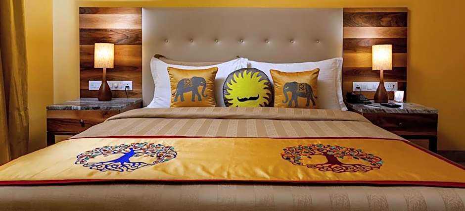 Deluxe Room is 344 square feet and includes a queen-size bed 150-154 width.